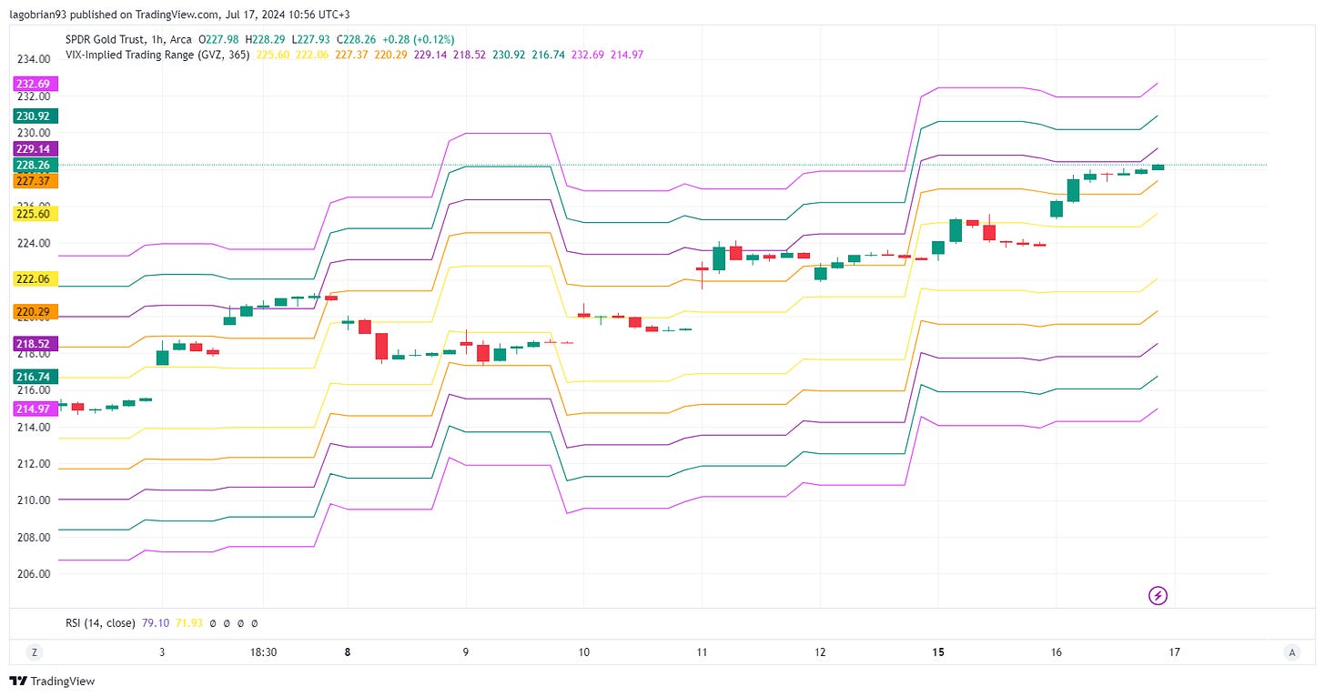 Gold is 2 standard deviations above the GVZ-implied upper bound.